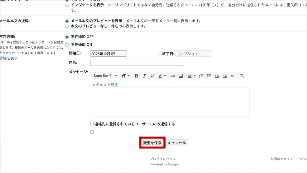 画面を一番下までスクロールし、「変更を保存」ボタンをクリックします。画面が再読み込みされれば設定完了です。