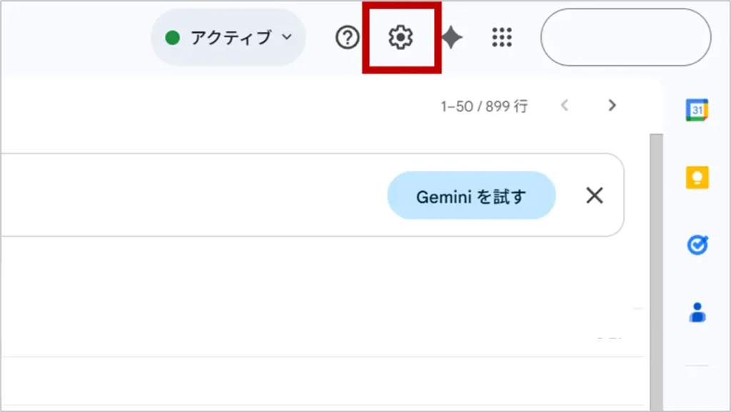 画面右上にある歯車のアイコン(設定)をクリックします。