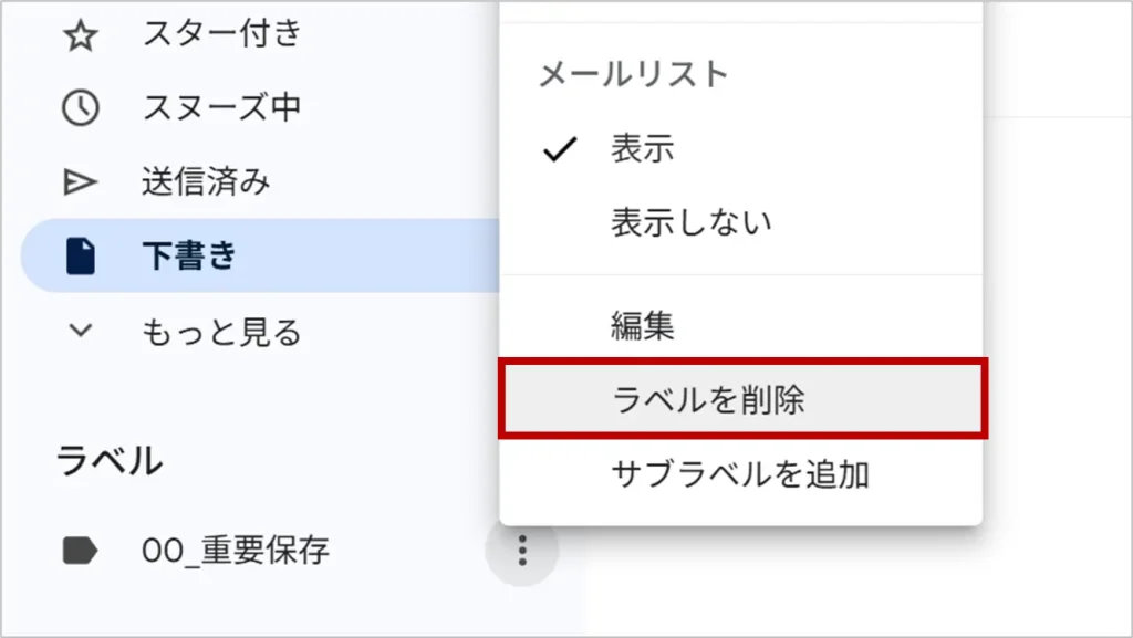 「ラベルを削除」を選択 メニューの一番下にある「ラベルを削除」をクリックします。
