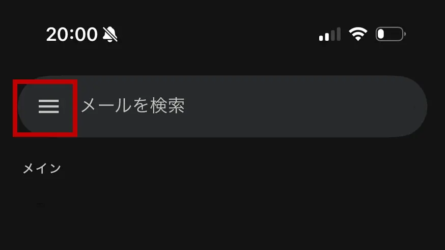 Gmailアプリを開き、左上の「≡(ハンバーガーメニュー)」をタップします。