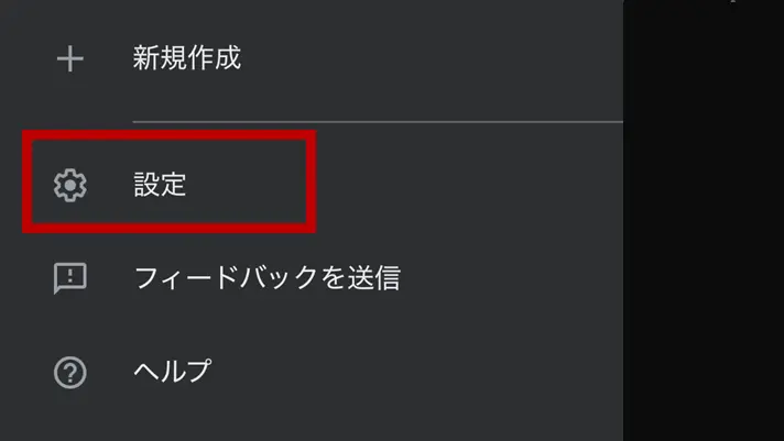 メニューを一番下までスクロールし、「設定(歯車アイコン)」をタップします。