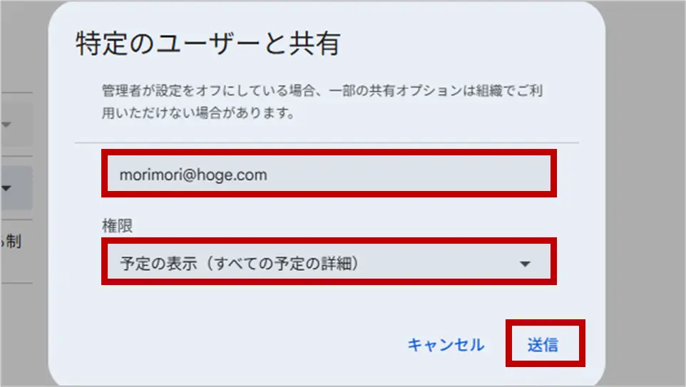 - 予定の変更に加え、さらに別の人にこのカレンダーを共有する権限まで持ちます。通常は使いません。