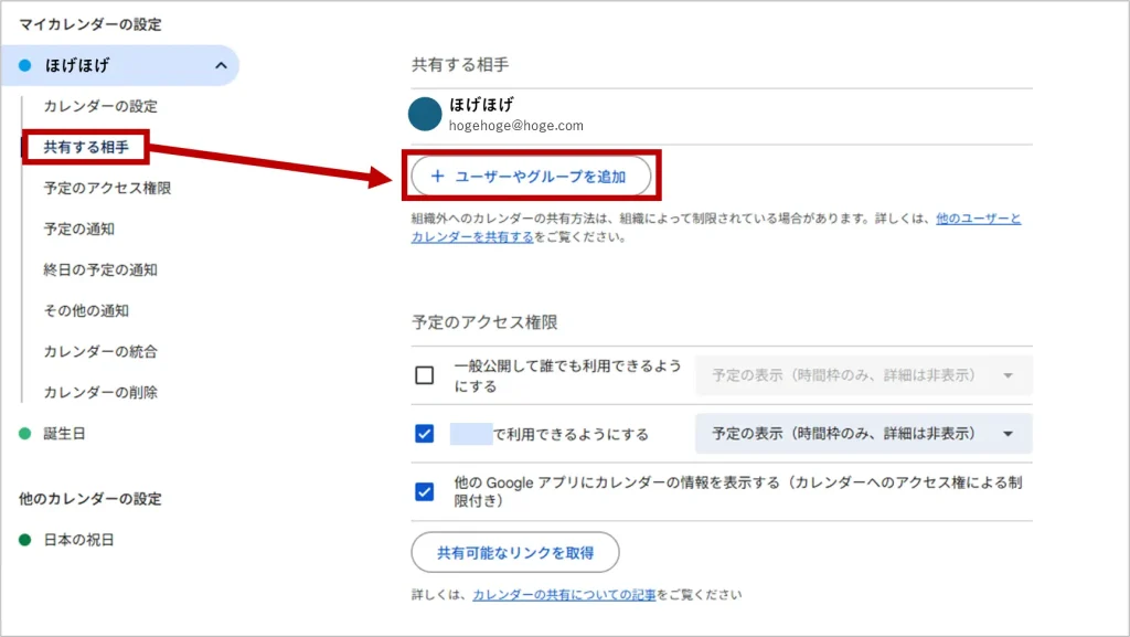 Googleカレンダーの共有には、大きく分けて2つのパターンがあります。