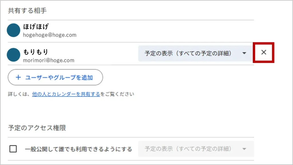 ここを間違えると、見られたくないプライベートな予定の詳細まで丸見えになったり、勝手に予定を消されたりするリスクがあります。