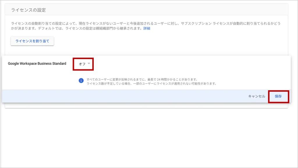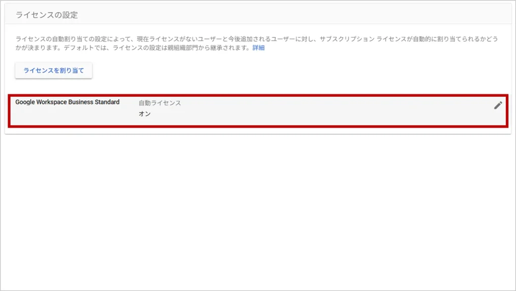 Google Workspaceは初期設定で、「ユーザーを作成すると、自動的に有料ライセンスを割り当てる」という設定になっています。