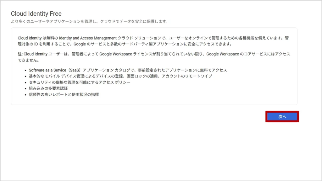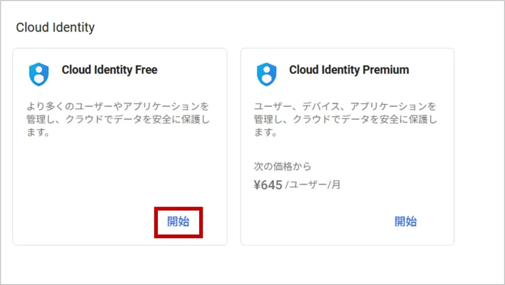 ※似ている名前の「Cloud Identity Premium」は有料なので間違えないように注意してください。
